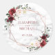 Moderno, elegante e moderno, este clássico design de adesivo redondo de casamento apresenta um falso geométrico de cobre embelezado com verde de eucalipto aquoso e arranjos florais arrojados e cor-de-rosa, sobre uma textura falsa de mármore branco. Os nomes dos casais e a data do casamento estão em cor de burgundy. Parte de um conjunto correspondente. Convidados Elegantes de Direitos Autorais. Todos os direitos reservados.
