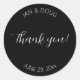 Decorre sua embalagem de favoritos de casamento com esses adesivos redondos que apresentam um preto sólido com guião branco e estilizado. Personalize seus adesivos substituindo nomes de noivas e noivos e data de casamento por seus. Selecione o tamanho do adesivo.
