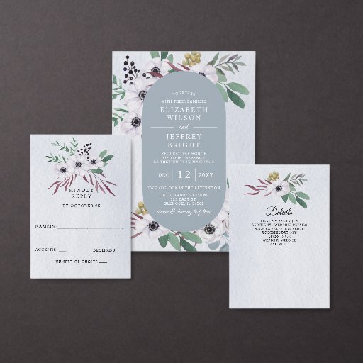 Rustic Watercolor Dusty Blue White Floral Wedding Criado por Maria G