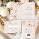 Um adesivo de boho minimalista com peonias brancas de cor d'água, rosas de pêssego macio e buquê floral de grama pampas em fundo de creme de marfim.