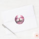 Bonita, elegante coloração-d'água rosa, cereja florida. Sakura, flores japonesas clássicas de autocolantes redondos. Personalize com seus Nomes e a data do casamento.