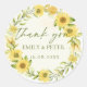 Casamento Floral De Girassol Amarelo Bonito Agradeço A Vinheta Redonda Clássica. A design é simples, mas elegante com girassóis. Personalize-os mudando os nomes da noiva e do noivo e a data do casamento. Isto é parte de uma coleção. Verifique a coleção de outros produtos de coordenação.Para mais personalização, sinta-se à vontade para entrar em contato comigo em mypaperlove2021@gmail.com
