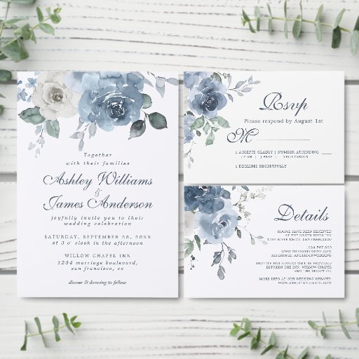 Dusty Dark Blue Ivory Floral Wedding CollectionCriado por Jolanda D