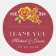 Vintage com um adesivo floral para o seu favor de festa de casamento. Obrigado de flor russa... seu rótulo adesivo para seu casamento clássico e elegante. Decorado com rosas e folhas. Vintage, talheres ocidentais. Personalize o texto para qualquer ocasião, como chá de panela, festa de noivado, chá de fraldas, aniversário ou festa de aniversário. Você pode personalizar a cor de fundo deste adesivo clicando no botão "personalizar" para obter mais opções.