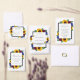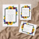 Design apresenta girassóis, rosas e flores silvestres elegantes com uma paleta de cor amarela, burgundy e azul ouro. Design também apresenta uma estrutura de cinza de carvão. Você pode alterar a cor de fundo na parte frontal e na parte traseira para a cor de sua escolha ou deixar ambas definidas como brancas.