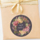 Adesivos redondos com flores elegantes de aquarela, cor-de-rosa e douradas, com belos verdes num fundo de beringela escuro, estes adesivos são perfeitos para favores de chás de panela, favores de casamento, selos de envelopes e muito mais. CORRESPONDENDO a itens na nossa loja.