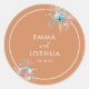 Um adesivo de casamento marrom-terra moderno e elegante, desenhado com flores de aquarela, e letras modernas e escritas. Personalize com nomes de noiva e noivo, e data de casamento.