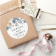 Etiqueta redonda clássica do casamento floral empoeirado rústico do verde azul de Boho