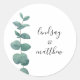 Este adesivo de casamento minimalista apresenta eucalipto em aquarela e tipografia estilosa.