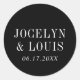 Vinhetas modernas de casamento com um design preto minimalista com seus nomes em uma fonte grande junto com sua data de casamento. Esta design é simples o suficiente para um casamento formal, mas faz uma declaração ousada.