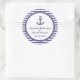 Personalize este adesivo náutico moderno, elegante e na moda. design de padrão de faixa azul e branca com uma âncora de entrega de marinho no topo. Uma modelo para uma fácil personalização dos seus detalhes de casamento, como nomes de noiva e noiva, e data de casamento. O mesmo design está disponível em outros suprimentos de papel de carta de casamento para carregar do tema do casamento náutico no estilo.