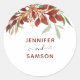 Um adesivo de casamento moderno e chic no tema bósico rústico. Apresenta uma intrincada folha de cascas de aquarelas, de cor burguesa, verde e castanha.