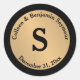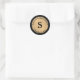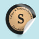 Personalize essas bolinhas douradas em adesivos pretos com duas linhas de texto personalizável e um monograma em negrito.