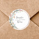 Apresentando o nosso "Vinheta redonda clássica personalizada de casamento verde Eucalyptus", um toque botânico para o seu dia especial. Com folhas de eucalipto exuberantes, esses adesivos adicionam uma vibração fresca e elegante aos seus favores ou convites de casamento. Personalize-os com seus nomes e data de casamento, criando um detalhe personalizado que captura a essência da sua história de amor. Perfeito por adicionar um toque natural e personalizado à sua celebração, estes adesivos servem como um belo lembrete da sua união no meio da beleza da natureza.