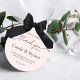 Miminalista Moderno Blush Pink Wedding Obrigado Clássico Round Sticker por suas etiquetas favoritas ao casamento. Personalize o texto para qualquer ocasião.