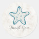 Perfeito para um casamento temático náutico é este casamento Rustic Starfish Obrigado A Vocês Stickers com um peixe-estrela azul escuro sobre um fundo de mármore bege claro. Esses adesivos clássicos e simples de casamento na praia são fáceis de personalizar com seus detalhes de casamento. Localize mais opções de personalização clicando em Personalizar.