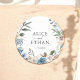 Introduzindo o nosso Sticker de Casamento Personalizado, uma mistura harmoniosa de prazer rústico e elegância contemporânea. Este adesivo maravilhosamente trabalhado apresenta uma charmosa camada de aquarela, mostrando um arranjo delicado de flores azuis e neutras. No coração deste abraço floral, seus nomes estão elegantemente inscritos em uma fonte serif clássica, conectada sem interrupções pela palavra 'E' em uma escrita moderna e fluente. Ideal por adicionar um toque especial aos seus favores de casamento, convites, ou notas de agradecimento, estes adesivos são uma forma perfeita de infundir o seu dia especial com um toque de encanto personalizado e sofisticação.