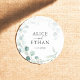Tome a essência do seu dia especial com o nosso elegante Sticker Casado, cuidadosamente projetado para adicionar um toque de romance à sua celebração. Ao cercar o adesivo circular, uma delicada camada aquosa de eucalipto simboliza amor e harmonia persistentes. No fundo, seus nomes estão graciosamente inscritos em uma fonte sofisticada de serifa, entrelaçada pela palavra 'E' em um roteiro moderno. Este adesivo captura lindamente a união de dois corações e é perfeito para adicionar um toque pessoal aos seus favores de casamento, convites ou notas de agradecimento.