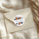 Adicione um pouco de elegância à sua recepção de casamento com o nosso belo adesivo Rustic Midnight Blue Monstera Wedding Round. Projetados para coordenar perfeitamente com o tema do seu casamento, esses adesivos personalizados apresentam um arranjo impressionante de folhas de monstera azul-da-meia-noite, folhas de palma e folhagem tropical.