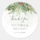 Expresse a sua gratidão aos seus convidados de uma forma festiva, com este obrigado verde de inverno que vocês colam. Estes autoadesivos apresentam um charmoso design de galhos de pinheiro e bagas, adicionando um toque de alegria de feriado aos seus favores de casamento, bomboniere, ou cartões de agradecimento. Personalize os adesivos com os nomes do casal e a data do casamento para criar uma lembrança duradoura para seus convidados. Estes adesivos estão disponíveis em várias formas e tamanhos para se adequarem perfeitamente às suas necessidades.