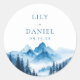 Essas etiquetas de casamento de montanhas aquarela azuis modernas rústicas podem ser personalizadas com sua informação em tipografia moderna. Desenhado por Thisisnotme©