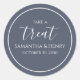 Um simples rótulo de adesivo de agradecimento favorável com uma escrita caligráfica de casamento, uma escrita caligráfica de casamento cinza, um modelo minimalista de take-a-treat, um rótulo de adesivo criativo para festa, um doce buffet barra cookie fofo, um simples círculo minimalista minimalista, um chic caprichoso personalizado, rótulos criativos e elegantes, uma recepção simples básica limpa e simples, suprimentos para festa de recepção de casamento, para recepção de casamento com decoração de tipografia de texto branco.