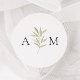 Mínimos adesivos de casamento verdes, com delicado ramo de oliveira e um monograma elegante.