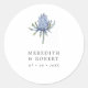 Um simples adesivo perfeito como selo de convite de casamento ou para os seus favores. Este design apresenta um cardo azul em aquarela. Personalize com seus nomes e data de casamento em fonte serifada cinza escuro.