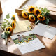 Celebre o seu casamento especial no estilo country com os nossos elegantes adesivos de casamento de girassol no estilo country. Nosso design apresenta nossos ouros de aquarela pintados manualmente, girassóis amarelos, florais brancos e verde natural, arranjados para criar este elegante arranjo de coroa ao estilo do país. Personalize com noiva e noivos iniciais. Todas as flores são pintadas manualmente pela Paparia de Moodthologia.