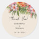 Celebre seu dia especial na elegância tropical com nosso impressionante adesivo de casamento de flores tropicais de aquarela. Este obrigado maravilhosamente trabalhado que você cola apresenta flores tropicais vibrantes e exóticas pintadas delicadamente em matizes pastéis suaves, criando uma atmosfera romântica e caprichosa para seus convidados. Use as ferramentas Personalizar e Design para alterar o texto, as fontes e as cores.