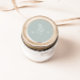 Um adesivo verde de casamento leve e empoeirado com um design de monograma de folha de forma minimalista.