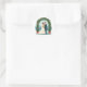Inclui 20 pequenos adesivos numa única folha. Ilustração elegante de uma noiva e noiva sob um arco floral com um pano de fundo da cidade, perfeita para comemorações de casamento.