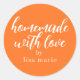 Adesivo personalizado rústico e moderno feito à mão com amor apresenta caligrafia estilosa e manuscrita em um fundo laranja brilhante. Perfeito para todos os seus presentes caseiros! Basta adicionar o seu nome ao rótulo. Exclusivamente projetado para você pelo Happy Dolphin Studio!