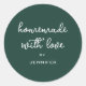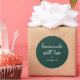 O rótulo Caseiro Verde Floresta Feito Com Amor apresenta caligrafia branca elegante em um rico fundo verde floresta. Perfeito para etiquetar produtos assados, presentes artesanais, velas ou itens artesanais, este adesivo personalizado adiciona um toque caloroso e sincero às suas criações caseiras. O design simples combina charme moderno e rústico, tornando-o ideal para fabricantes de artesanato e embalagens de presentes.