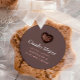 O adesivo castanho-castanho-chocolate simples moderno apresenta uma trufa de chocolate em forma de coração sobre um fundo castanho. Personalizável com o nome e o título da sua empresa abaixo. Um adesivo profissional, elegante para o padeiro, padaria, padeiro, cozinheiro, cozinheiro, e muito mais.