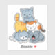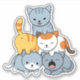 Funny illustration of five cartoon cats in a pyramid formation with two cats at the bottom, two in the middle, and one on top. The cats have different markings and various expressions. One appears to be facing away.