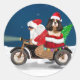 Um Papai Noel andando de bicicleta entregando árvore de Natal e Cavalier King cão como presente é uma ideia perfeita de presente de Natal para alguém que ama essa raça de cachorro.