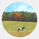 Adesivo Cavalo castanho e branco,árvores de outono,céu azu