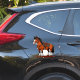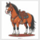 Um cavalo marrom brilhante está em perfil, equipado com um coxim de sela acolchoado vermelho, bridão de couro e equipamento de montaria. Ideal para temas equestres, montaria, estábulo e treinamento em coleções de estoque.