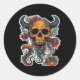 Traga vibrações escuras e estranhas para o Halloween com este Caveira ousado com Cornos envoltos em torno de um adesivo de abóbora. Perfeito para decorações assustadoras, favoritos para festas e fantasias góticas de Halloween, este design assustador combina arte crônica com estilo clássico de abóbora. Excelente para garrafas de água, laptop, álbuns, bolsas para tratar ou como parte dos acessórios do seu vestido de Halloween. Um imperativo para fãs de terror, amantes de arte gótica, e qualquer um que comemore a estação assustadora no estilo.