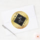 Celebrar o 27º aniversário de casamento musical com estes na moda! As legantes inscrições em preto e branco com uma nota musical confetti em uma película de ouro acrescentam um toque memorável para esta ocasião especial e um marco extraordinário. Personalize com os nomes dos casais e as datas do casamento. Excelente para uso em hóspedes/favoritos para festas, garrafas de vinho, papelaria, decorações de mesas, envelopes e muito mais. Design © W.H. Sim. Mais informações em zazzle.com/expressionsoccasions