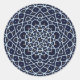 Uma mandala concêntrica, tipo rendas, em azul-claro, com pontos azuis brilhantes e dourados, girados entre as camadas, faz um design divertido, que traz à mente um céu noturno estrelado.