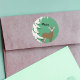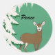Esta ilustração da safra de inverno tem um veado marrom solitário na neve cercado por pinheiros contra um fundo minúsculo e verde. Veja minha loja Art by MAR para combinar produtos com este design.