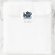 Aplique estes autocolantes elegantes com tema de chá a seus favores de chá de bebé para dizer obrigado aos convidados com estilo. Com um bule de chá azul-marinho e florais azuis com folhagens em aquarela. Personalize com as suas informações. Clique em "clique para personalizar ainda mais" para alterar o estilo, tamanho ou cor da letra.