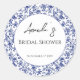 Adesivo Redondo Clássico de Chá de Bebê Azul Floral Elegante para uma festa temática toile moderna, dá um charme à sua celebração