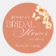 Adesivos e etiquetas personalizados para chá de bebê com design floral em aquarela amarelo e laranja.