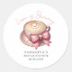 Celebre a noiva com um tema que todos amam, apresentando uma xícara de café com laço coquete rosa. Quer você esteja organizando um brunch aconchegante pela manhã ou uma barra de café sofisticada à tarde, esse adesivo "Love is Brewing" é perfeito para envelopes e lembrancinhas.