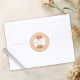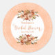 Com flores de aquarela rosa rústicas boho e uma borda de filigrana de renda, esses belos adesivos redondos clássicos de chá de bebê floral podem ser personalizados com o nome da noiva e a data do seu chá.