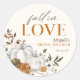 Belo adesivo de "Se Apaixonar" com abóboras pastéis em aquarela, flores de ferrugem e laranja queimada, e folhagens de outono. Este design floral moderno é perfeito para criar papelaria temática de outono! Torne-o seu com facilidade, inserindo suas informações. Um modelo de etiqueta de agradecimento elegante para tornar a ocasião ainda mais especial.