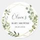 Adesivo Redondo Clássico Chá de Bebê Floral Geométrico de Eucalipto Moderno em Moldura. Para personalização adicional, clique no link "personalizar ainda mais" e use nossa ferramenta para editar este modelo. Se precisar de ajuda, entre em contato conosco.
